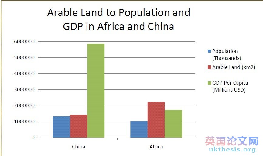 Arable Landto Population and GDP in Africa and China