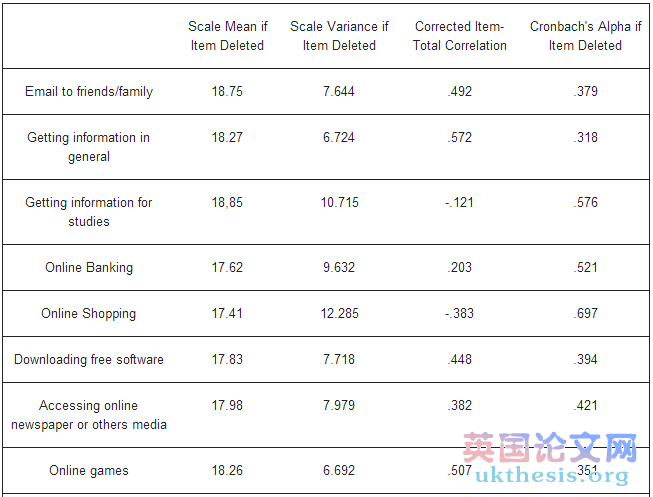 So,we decide to choose to delete “online shopping” to make the Cronbach's Alpha greater than 0.600.