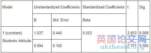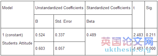 To examine the hypothesis are accepted or rejected, coefficients is used. For a hypothesis to be accepted, the significant level must less (<) than 0.05. On the other hand, the hypotheses that have the significant level greater (>) than 0.05, it should be rejected.#p#分頁標題#e#