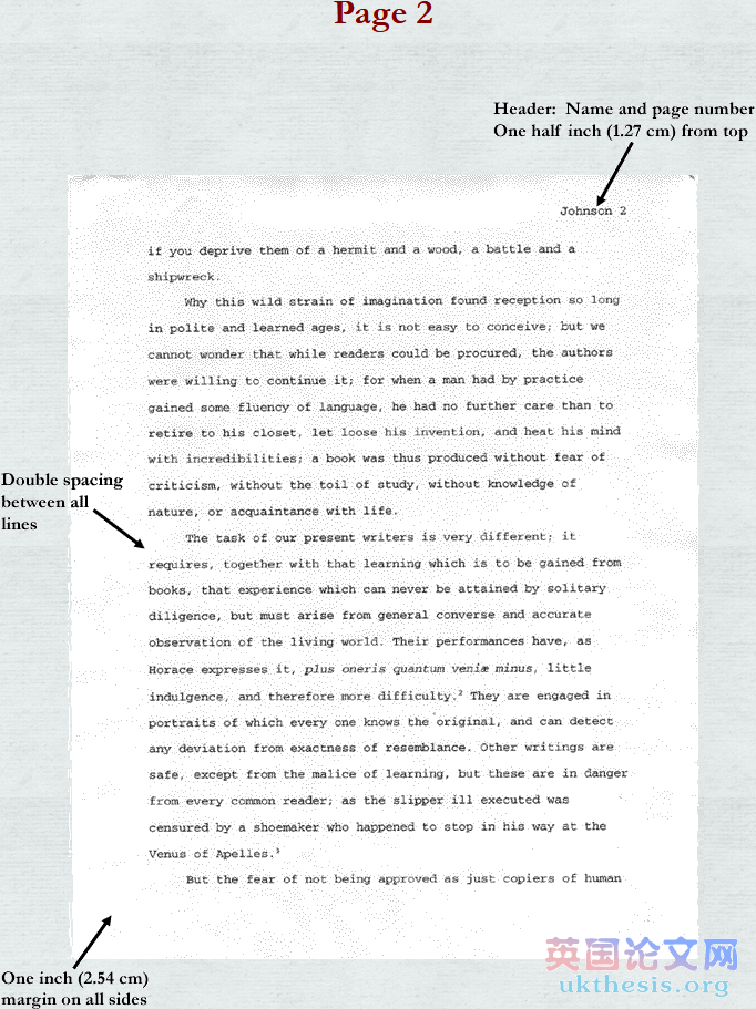 在接下來的頁面中有連續(xù)編號(hào),都要有包括你的姓和頁數(shù)的“頭”,寫在也是離頁面頂部有1/2英寸(1.25cm)處,開始寫文章是以距離頁面頂部1英寸(2.54cm)處。
