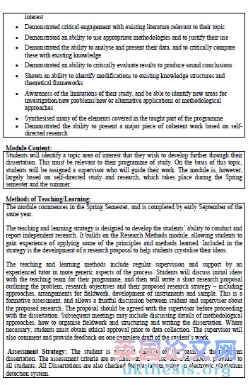 It is expected that you will dedicate regular time to your dissertation throughout the whole of the module, both during and after the scheduled support sessions, and throughout Semester 2 as well as during the summer period. You will need to bear in mind other module commitments (such as exam revision and/ or coursework in Semester 2), but you are expected to complete your literature review during Semester 2. Try to spend at least some time each week on your dissertation, even if this is only collecting literature. Week 15 of Semester 1 (Reading Week) should be used to finalise your topic and to start your proposal. Sessions will be run to guide you in the preparation of your Proposal during this week.#p#分頁標題#e#