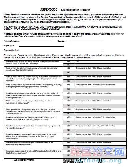 Be advised that all dissertations are put through a plagiarism detection service, which in the past has detected plagiarism from academic sources, the internet, other students in Surrey, and students in other academic institutions. The University takes plagiarism very seriously, and has strict penalties. Through the SurreyLearn Common Room, you have the opportunity to submit your work through Turnitin ® for checking before you submit your dissertation.#p#分頁標題#e#