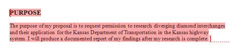 在Purpose這一部分中,作者需要寫出提出這個research proposal的研究主題是什么,并確認自己將在完成研究后將自己的研究成果發表出來。下面為Purpose部分的示例。