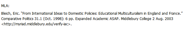 這里reference中的"6pp."表示的是文章的頁數有6頁,“Expanded Academic ASAP. Middlebury College”指的是該網頁的標題,“2 Aug. 2000”指的是dissertation作者的發布日期。