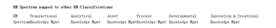 This Binney's categories of activities helps to map these activities to KM Classifications. This can be mapped to other KM classifications too.