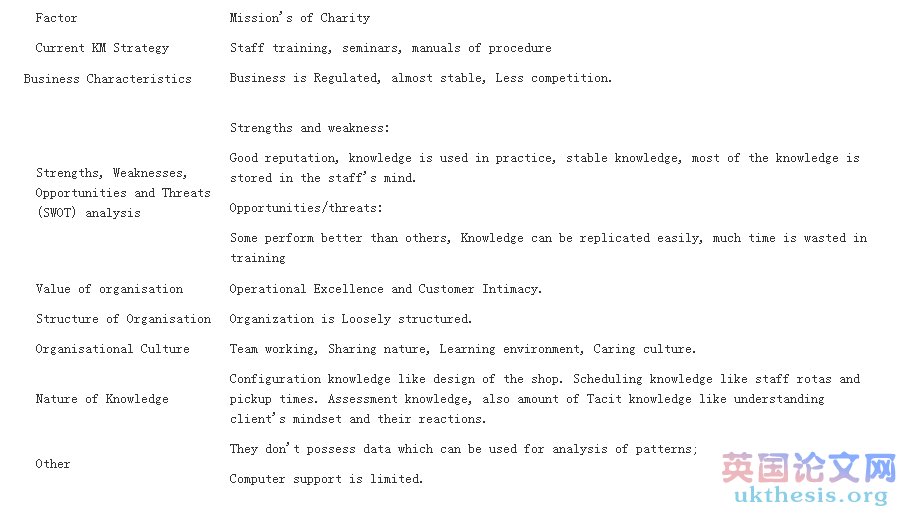 Considering potential false factors that suppose to selecting a Knowledge Management approach in the Missionaries of Charity Case study, insufficient of Funds was a common factor against transacting or analytical Knowledge Management.
