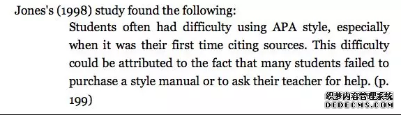注意,當直接引用的內容長度大于等于4行,則應另提一段,段落推進1/2 inch