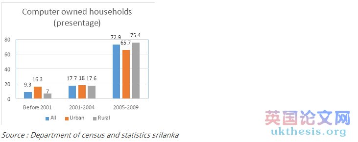Computer own house hold percentage is average 73% in Entire Island which is significant amount increase in rural areas. This is basically due to globalization people are more informative and they cognitively adopted to use the technology. Therefore most of the Srilankan companies tend to use cutting age technologies and trying to uplift their culture values to gain better competitor advantage.