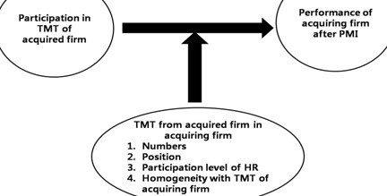 I want to dig out that the performance of acquiring firm which implemented post merger integration is influenced by in participation of top management team of acquired firm in top management team of acquiring firm.