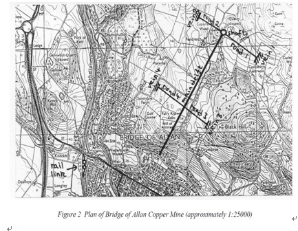 The main drift will provide access from Bridge of Allan, at an entrance opposite the tennis courts, sloping down to intersect a shaft sunk from Cuparlaw Wood, see Figure 2. The underground access roads (1-4) will link the drift, shaft and the four copper veins. A mixture of conveyor belts and underground trains will be used in the drift and roadways to transport men, materials and the copper ore. The roads can be driven as soon as access is possible, either via the shaft or drift.