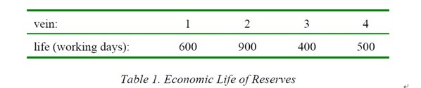 The boreholes will be drilled using a lightweight drilling rig which is attached to a tractor. This rig can thus cross rough country and does not need any specially built roads. The rig is fairly primitive but it is relatively cheap. A specialist firm hires out the rig at a fixed cost of £100 000 plus £1000 per day for the equipment and support team. Extensive experience indicates that a drilling rate of 4m per day should be achieved. It is hoped that only one rig will be used though more might be made available if really necessary. It has been estimated that the economic life of each of the four veins to be worked in the proposed development are:#p#分頁(yè)標(biāo)題#e#