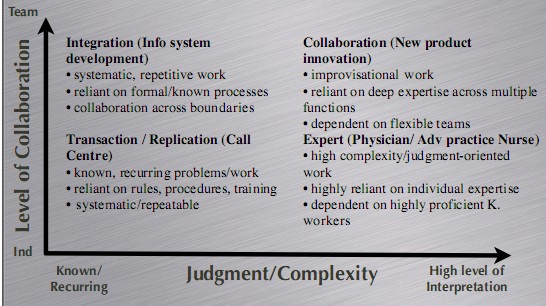 2 Knowledge management makes sense of information in the context of it's users. Practioners summarize, contextualize, value-judge, rank, synthesize, edit and facilitate to make information and knowledge accessible between people, either within or outside their organization. It concerns itself with the social interactions around the sharing and use of knowledge. KM is largely based on tacit interpretation and less on rules. Some question if knowledge can be "managed" at all. KM has often been framed in terms of knowledge in action for an end purpose. KM implies that the most important drivers relate to human behavior and interchange.