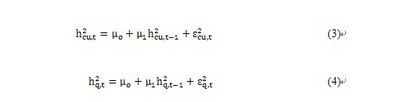The function of the autoregressive garch model is to indicate the impact of the exchange rate changing on export. Due to the research of Chou (2000), the equation for this study is: