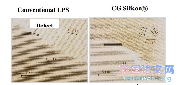 圖1顯示了CG硅和傳統多晶硅的TEM照片。在CG硅的情況下,液晶疇在晶界處的原子排列是顯而易見的,而在傳統的多晶Si在晶界處晶體結構的連續性不足。其結果是,在電子的場效應遷移率可高達2/ Vs的CG硅TFT300厘米。然而,最重要的是,CG硅技術提供了一種更加穩定的過程,這是大規模生產中不可缺少的優點。