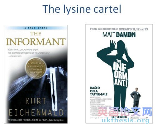 Mark Whitacre of ADM informed the FBI about the cartel. Then secretly filmed the pretend trade association meetings which were held around the world and attended by senior executives.