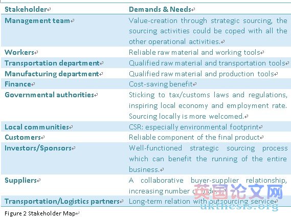 The team which works for the strategic sourcing will consist of the general manager and members from all relevant departments. Due to the scale of our business, all the members within the company will join in the strategic sourcing. The aim of the team is to develop appropriatesuppliers for the material of the business, coordinate among different functional departments to achieve strategic sourcing, purchasing and procurement. To establish collaborative and close buyer-supplier relationship, there is a need to clarify the demands of all the stakeholder’s expectations from strategic sourcing. The following diagram lists all the relevant internal and external stakeholders of the business with their expectations and needs from strategic sourcing. It would help the company to maximize stakeholder benefits, get them more involved in the business and expand the business of the Floras.