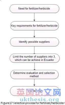 Farmland is the most important raw material for cut flower planting. It is the basic component of all the subsequent processes. The owners of farmland in Ecuador are mainly local government. A few areas of farmland are owned by local private land owners. There is a large amount of farmland owned by foreign.The supplier selection process is shown in the next visio diagram in order to indicate how the selection process will go for choosing a suitable area for planting.