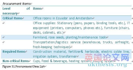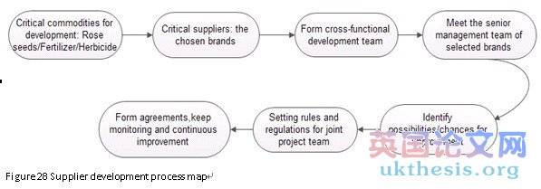下面的章節將討論戰略采購過程中的商業模式植物。采購是整個商業模式的一部分,與制造業和運輸業一起。探索戰略采購的過程,有助于完成整個業務流程,為研究提供理論基礎。辦公桌研究過程中實施的探索行業背景信息,以澄清公司的大畫面。由于花卉產業的特殊情況和花的制造工藝,采購過程和需求將是不同的。在以下內容中闡述了采購策略、供應商管理流程、談判階段細節和合同管理。所有的Visio流程圖將顯示每個進程的詳細信息。成本/效益分析將被包括在過去,以進一步解釋經濟狀況的業務。所有的分析和策略,將在第五章中得出結論。The following chapter will discuss the strategic sourcing process of Floras in the business model. Sourcing is a part of the entire business model, along with manufacturing and transportation. Exploring detail process of strategic sourcing would help to accomplish the whole business process.A literature review is used to provide theoretical foundation to the research. Desk research process is implemented to explore the industry background information in order to clarify the big picture of the company. Due to the special condition of flower industry and flower manufacturing process, the sourcing process and requirements will be various. The procurement strategies, supplier management process, negotiation stage details and contract management will be elaborated in the following content. All the visio flow diagrams will be included to indicate the detail information of each process. Cost/Benefit analysis will be included at last to further explain the economic condition of the business. All the analysis and strategies will be concluded in chapter conclusion.