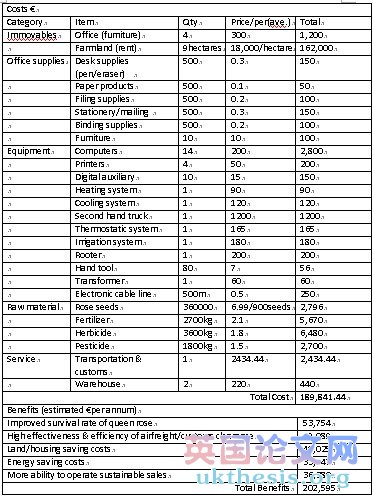 Cost/Benefit analysis is a tool used to determine whether the strategic sourcing will end with positive results. The following diagram shows the cost/benefit situation of the sourcing program of Floras queen rose project.