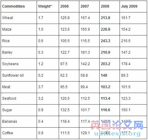 Table 1. Price of non fuel commodities 2006-2009 in US $
