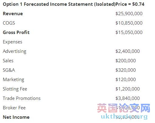 Finally, Option 3 gives a better profit than the former but not sufficient revenue. Nevertheless, this option highlights the trend and the researched growth rate of 12.5% with the children’s market and multi-pack sales which is an opportunity to capitalize on. This option also bears the least amount of risk due to minimal investment, maintaining and enhancing relationships with existing intermediaries and channel partners, and not having to undergo marketing changes such as brand positioning, or significant production changes. Gross profits with product sales here are 37.6%.